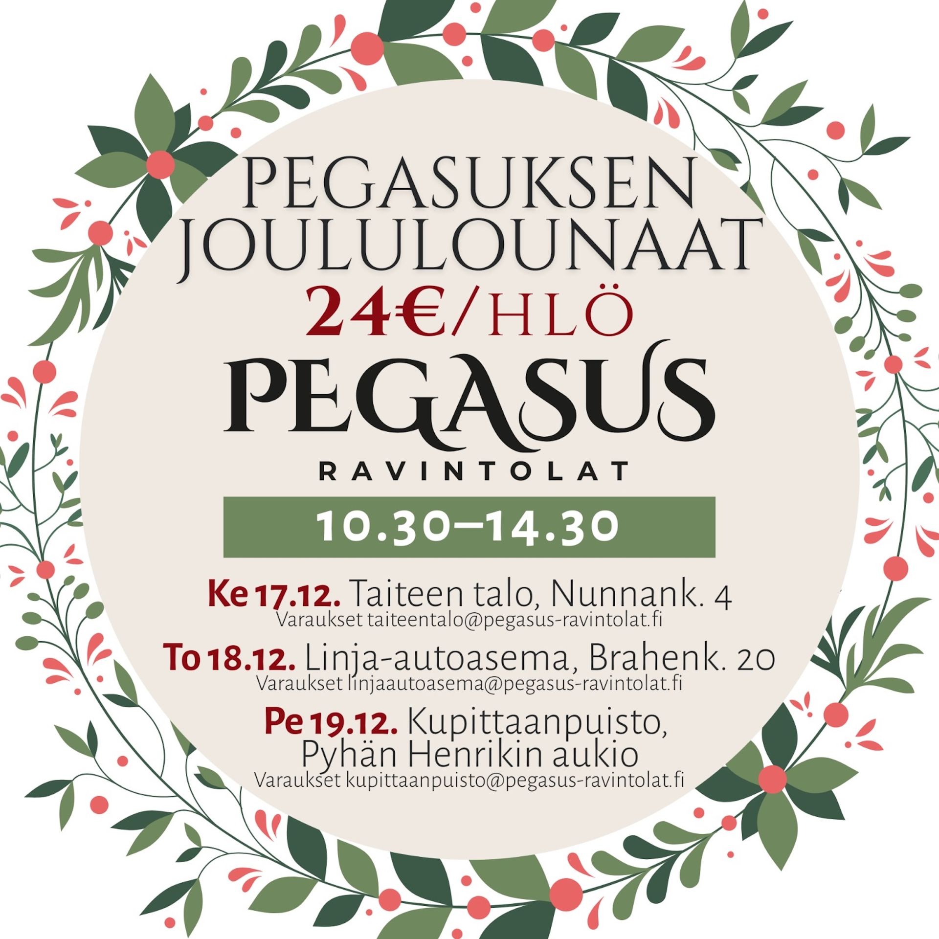 Tervetuloa nauttimaan herkullisista joululounaista Pegasus tyyliin!