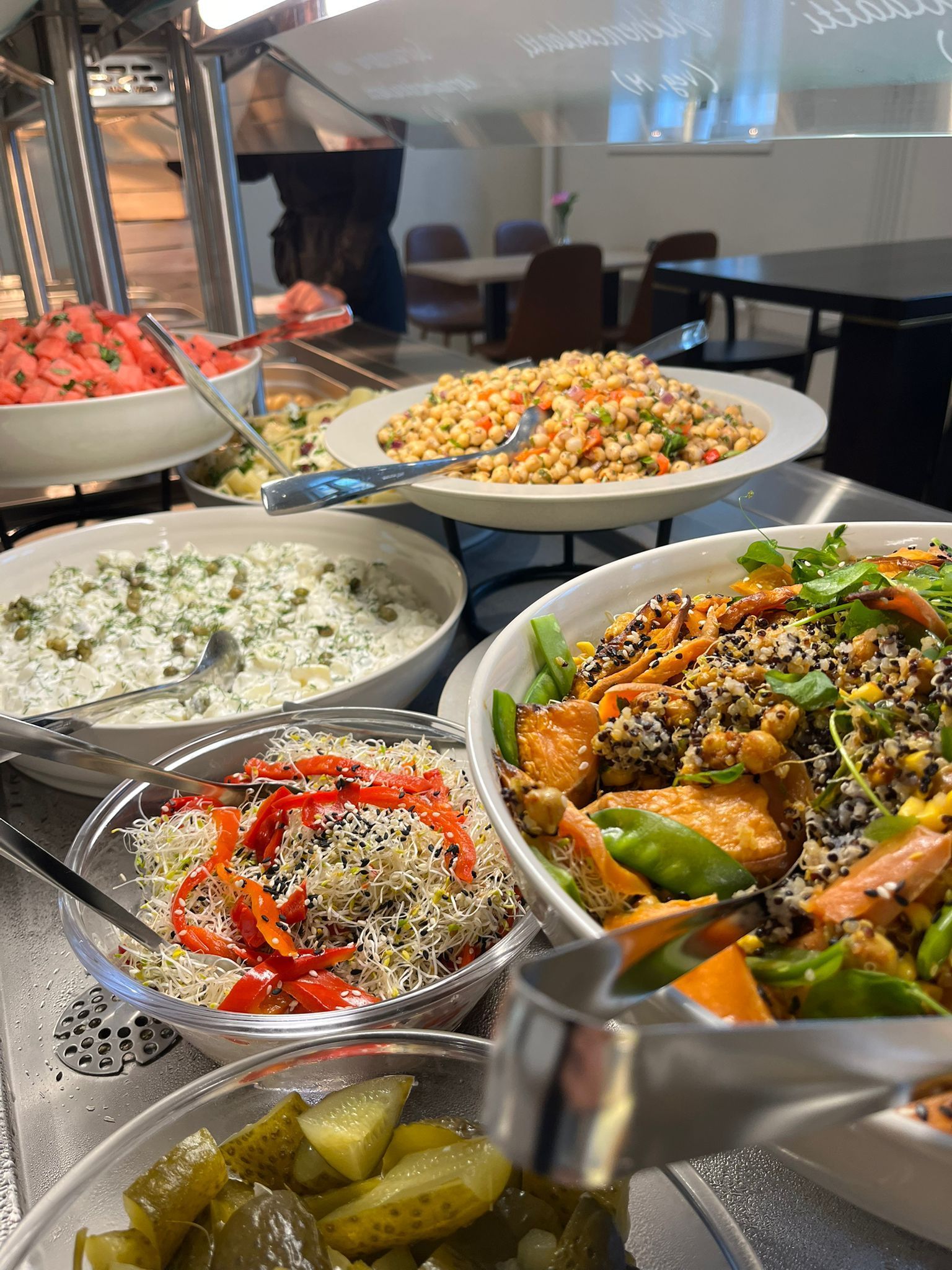 Lisäksi vaihtuvat lämpimät ruuat keittiön inspiraation mukaan – tarjolla on aina tuoreita ja maistuvia vaihtoehtoja kokkimme valitsemista raaka-aineista.