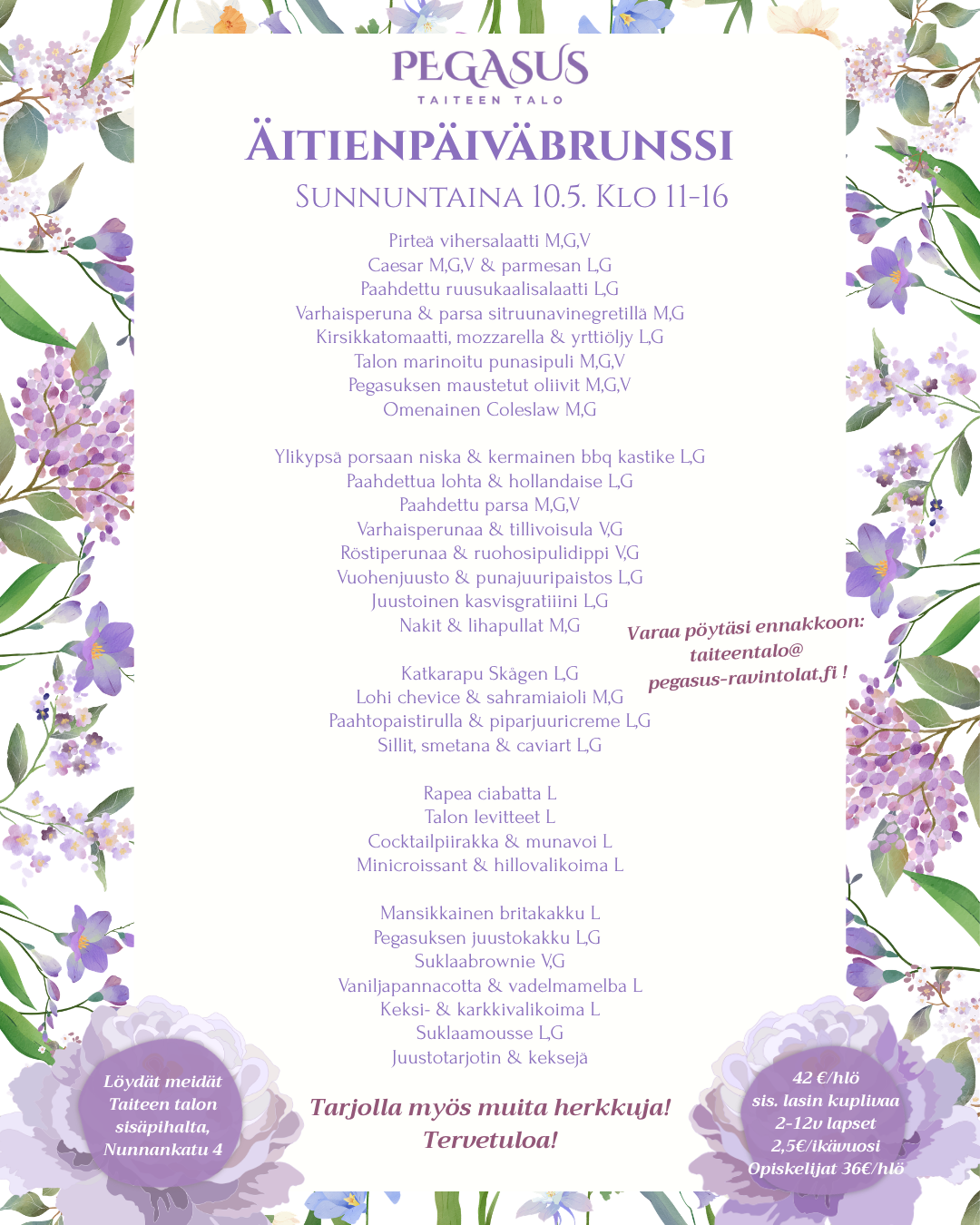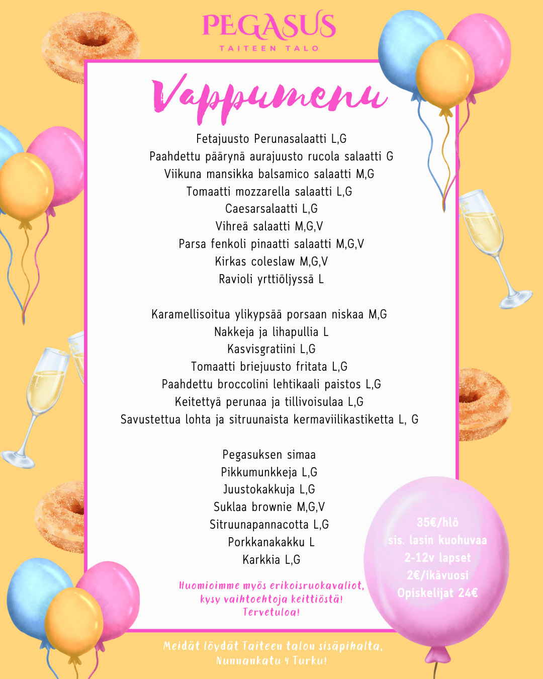 Vappubrunssit Pegasus Taiteen talolla 1.5 pe, 2.5. la ja 3.5. su